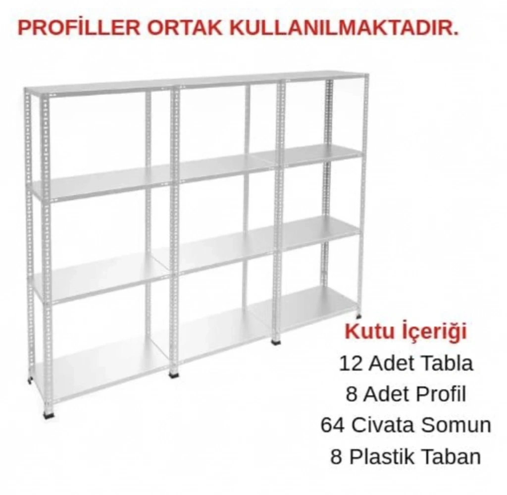 4 Katlı 3'lü Galvaniz Çelik Raf Sistemi; depo, arşiv, kiler, dosya odası, market ve bakkal gibi farklı kullanım alanlarında düzenli, güvenli ve uzun ömürlü bir depolama çözümü sunmak üzere tasarlanmıştır. Galvaniz çelikten üretilen bu metal raf sistemi, paslanmaya karşı dirençli yapısı sayesinde hem ticari hem de bireysel kullanımlar için ideal bir tercihtir.