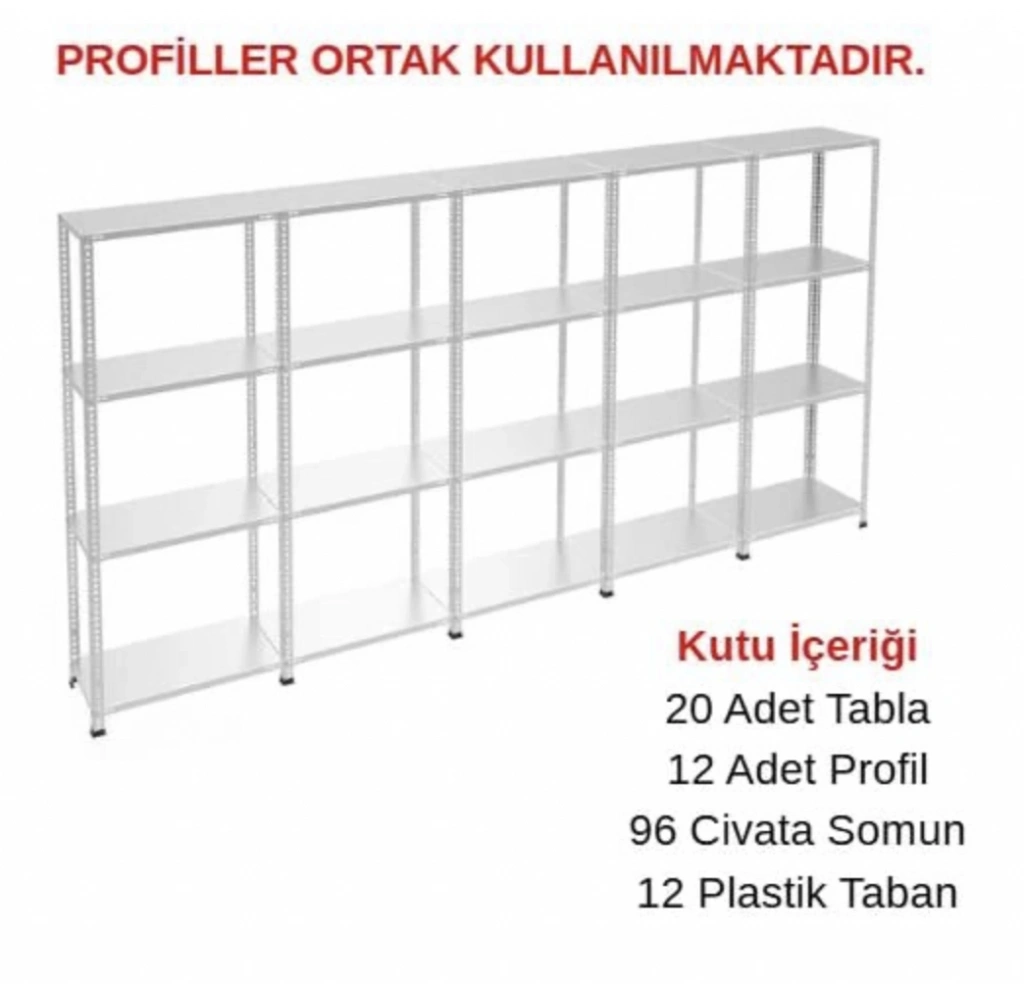 4 Katlı 5'li Galvaniz Çelik Raf Sistemi; depo, arşiv, kiler, dosya odası, market ve bakkal gibi farklı kullanım alanlarında düzenli, güvenli ve uzun ömürlü bir depolama çözümü sunmak üzere tasarlanmıştır. Galvaniz çelikten üretilen bu metal raf sistemi, paslanmaya karşı dirençli yapısı sayesinde hem ticari hem de bireysel kullanımlar için ideal bir tercihtir.